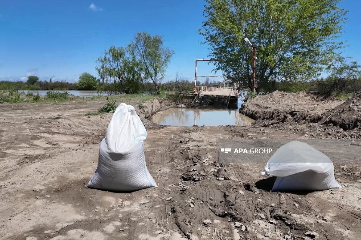 Sabirabadın Ulacalı kəndində Kür çayında suyun səviyyəsinin artması fəsadlara səbəb olub.