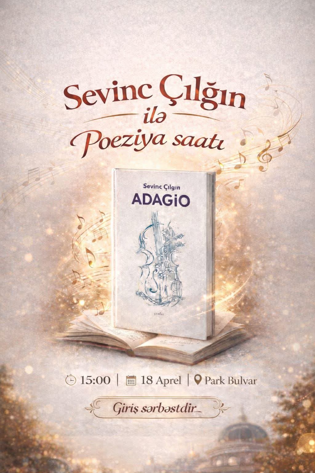 HİT.az xəbər verir ki, tədbirdə müəllifin poeziya və musiqinin incə ahəngini özündə birləşdirən "ADAGİO" adlı şeirlər kitabından şeirlər səsləndiriləcək.